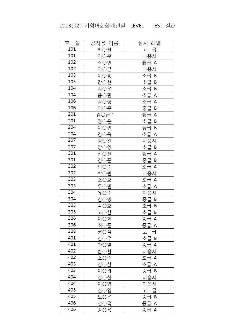 본인의 레벨테스트 결과를 반드시 확인 후 레벨테스트 결과대로 수강신청을 하시기 바랍니다